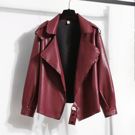 Dames Cropped Motorjack van Imitatieleer met Riem