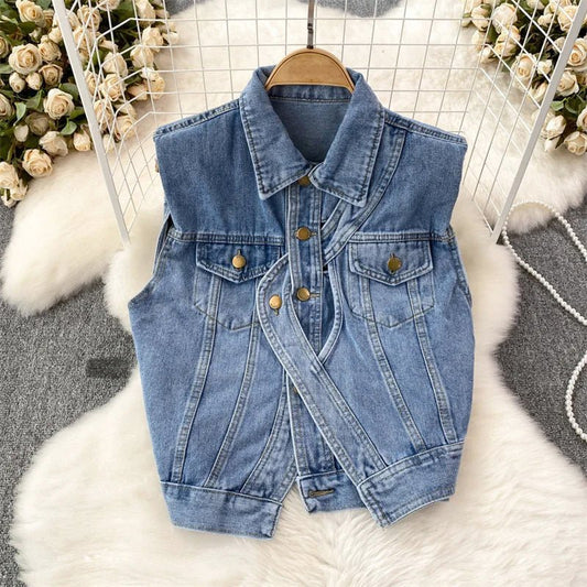 AanbiedingAsymmetrisch Denim Vest Voor Vrouwen