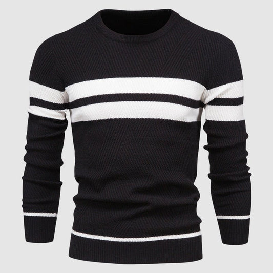 Heren Wolmix Trui met Strepen en Geometrisch Ribpatroon