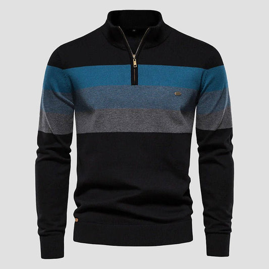 Heren Slim-Fit Trui met Halve Ritssluiting en Strepen
